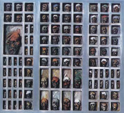 Ölfarbe und Objekt 300x200x10 cm 1997 |